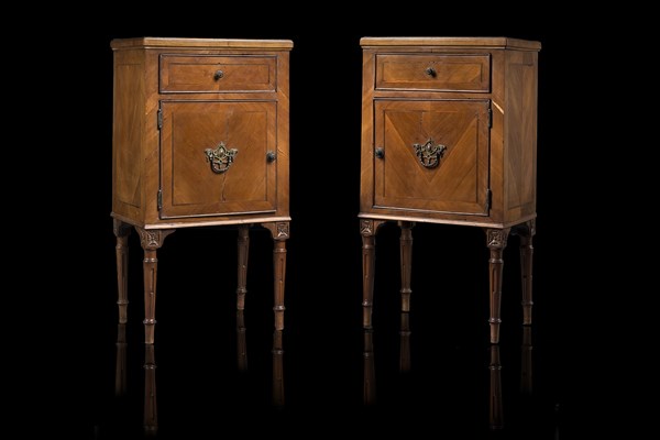 Coppia di comodini veneti in ciliegio ad un'anta e un cassetto filettati. Quatt
