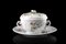 Manifattura del secolo XIX. Tazza da puerpera con coperchio e piattino in porce