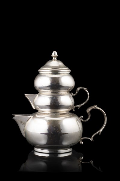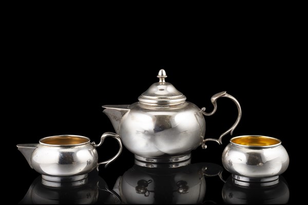 Servizio tête-à-tête in argento con interni in vermeille composto da caffettier