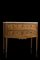 Antico comoncino in legno di frutto a due cassetti intagliati a nastri e feston