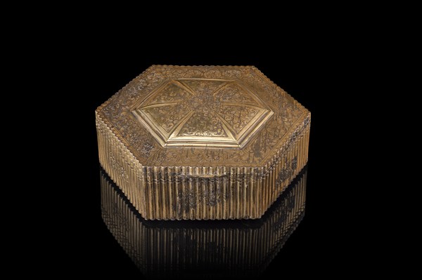 Lotto 301 | Scatola in argento di forma esagonale incisa e cesellata a volute e riccioli. T