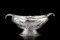 Alzata biansata in argento con bordo sagomato decorato a foglie e volute. Corpo