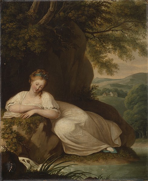 Ignoto del secolo XIX Giovane donna distesa lungo un fiume Olio su tela, cm 37