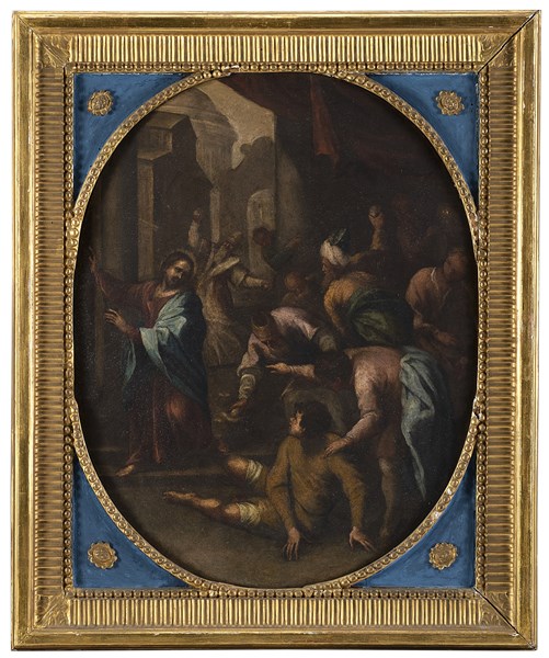 Scuola veneta del secolo XVII La tentata lapidazione di Cristo Olio su rame, c