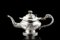 Teiera in argento decorata sul corpo con scena di caccia alle fiere, anse e bec