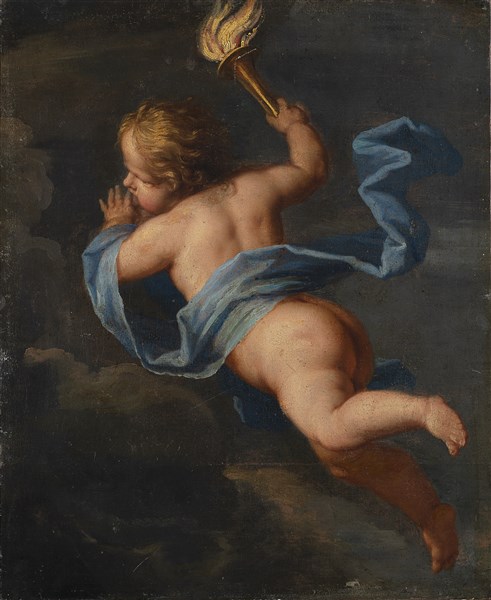 Scuola italiana del secolo XVIII Putto con fiaccola Olio su tela, cm 73x59,5 (