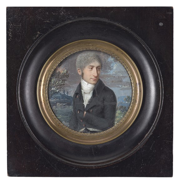 19th-century Emilian master "Gentleman of the Tardini family" miniature on ivory (d. cm 6) Framed (defects)