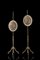A pair of 19th-century lacquered wooden fans on stands with oval etchings after Angelica Kaufmann (h. tot cm 160) (defects and losses)