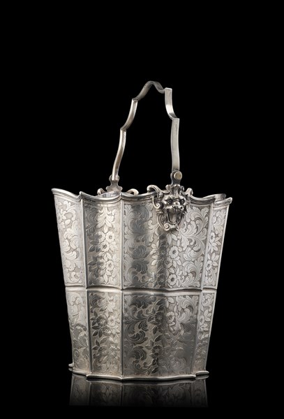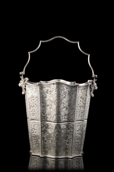 Cestello portaghiaccio in argento di forma sagomata bulinato