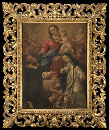 Scuola emiliana del secolo XVIII Madonna del rosario con San Domenico e Santa
