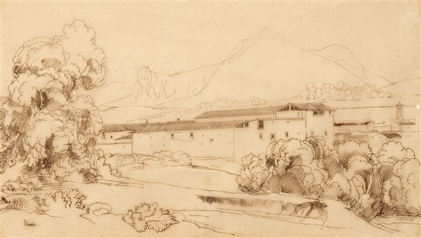 Lotto 537 | Ignoto del secolo XIX Paesaggio Penna e inchiostro bruno su carta trasparente