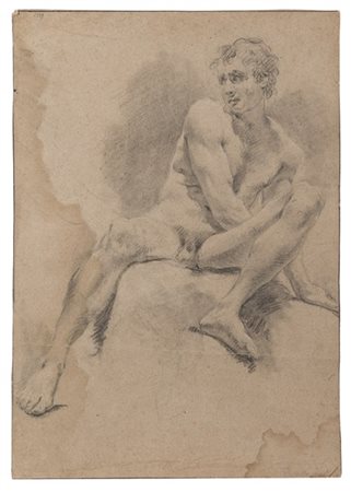 Artista del secolo XVIII Studio di figura maschile Carboncino su carta tonale