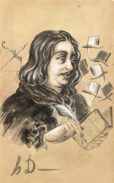 Imitatore di Honorè Daumier Ritratto di Aurore Dupin Penna, inchiostro nero, i