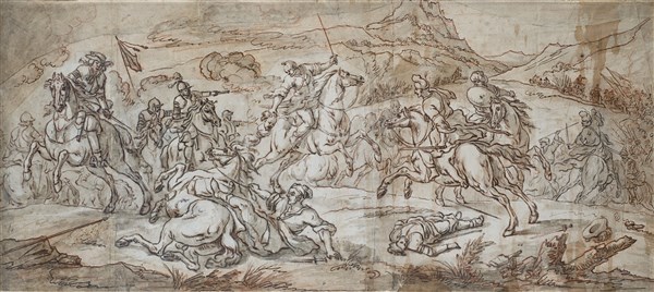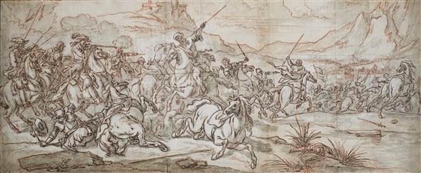 Cerchia dei Parrocel, secolo XVIII Battaglie Coppia di disegni a penna, inchio
