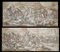 Coppia di disegni a penna, inchiostro bruno, carboncino, matita rossa e acquerello bruno su più fogli di carta assemblati, cm 34,5x86 circa e cm 36x83 circa