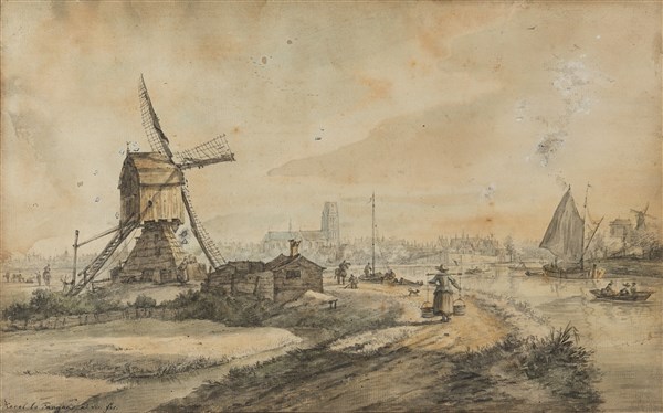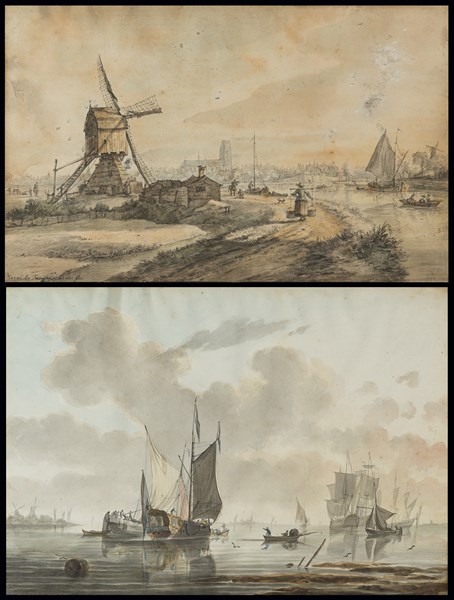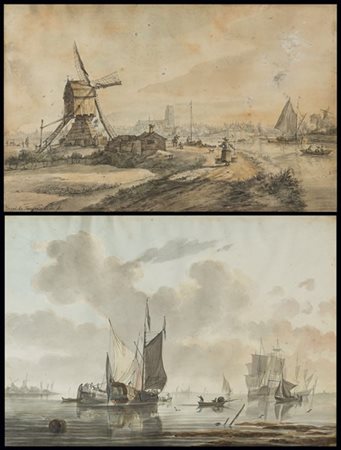 Lotto composto da due disegni: Karel La Fargue (1738 -1793) Paesaggio con muli