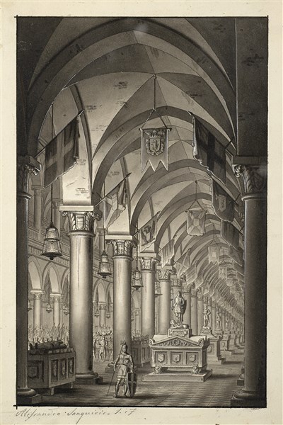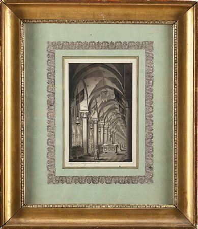 Alessandro Sanquirico Interno di cattedrale Penna e inchiostro nero, acquerellat