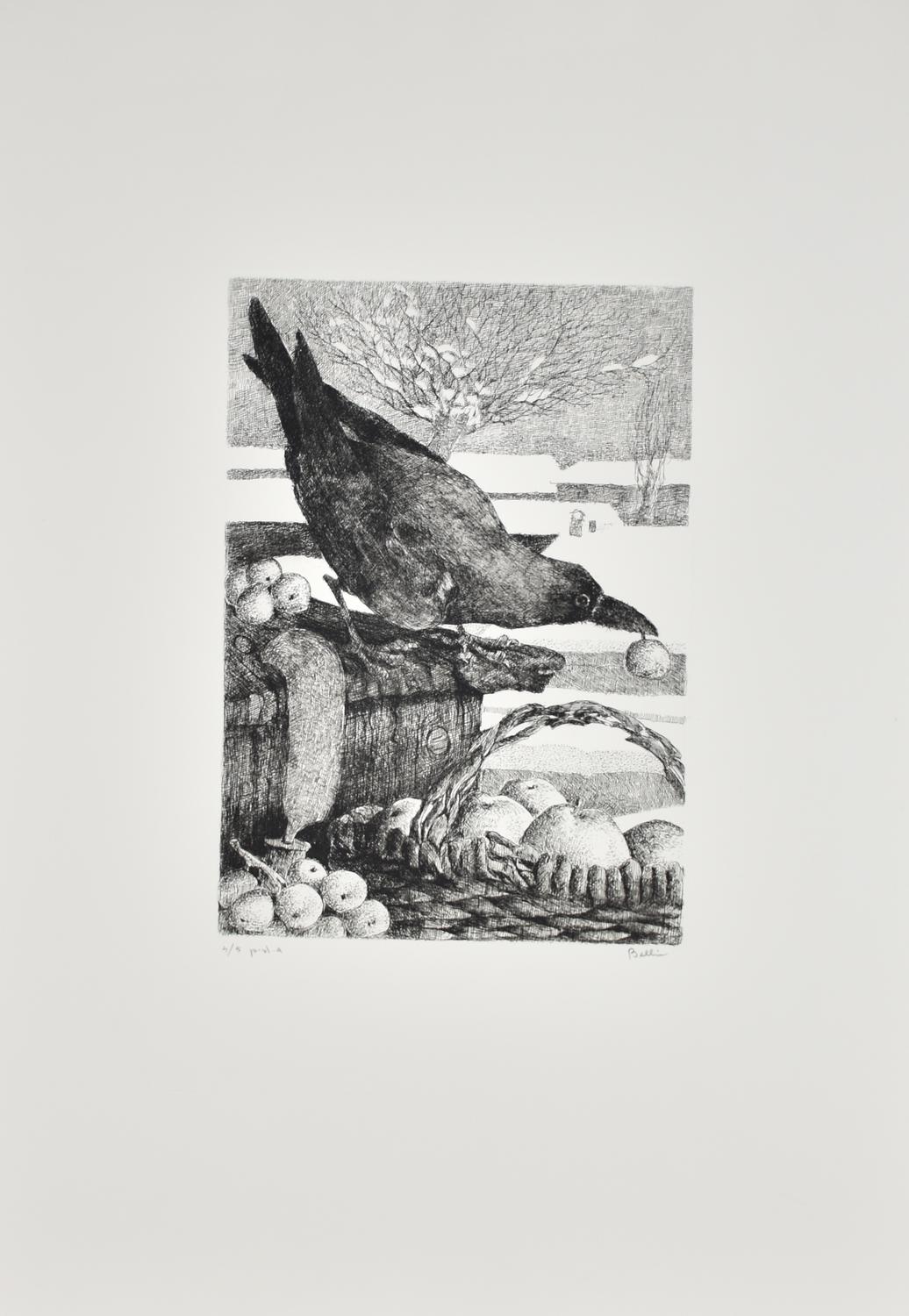 Enzo Bellini Il Corvo acquaforte su carta, cm 70x50 (lastra cm 34x24,5) es. 4...