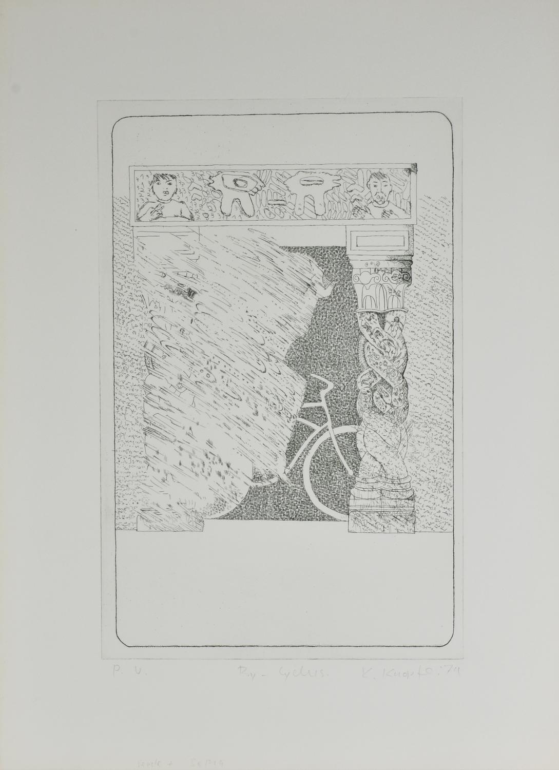 Claudio Knopfli BY-CYCLUS acquaforte su carta, cm 70x50 (lastra cm 50x32) es....