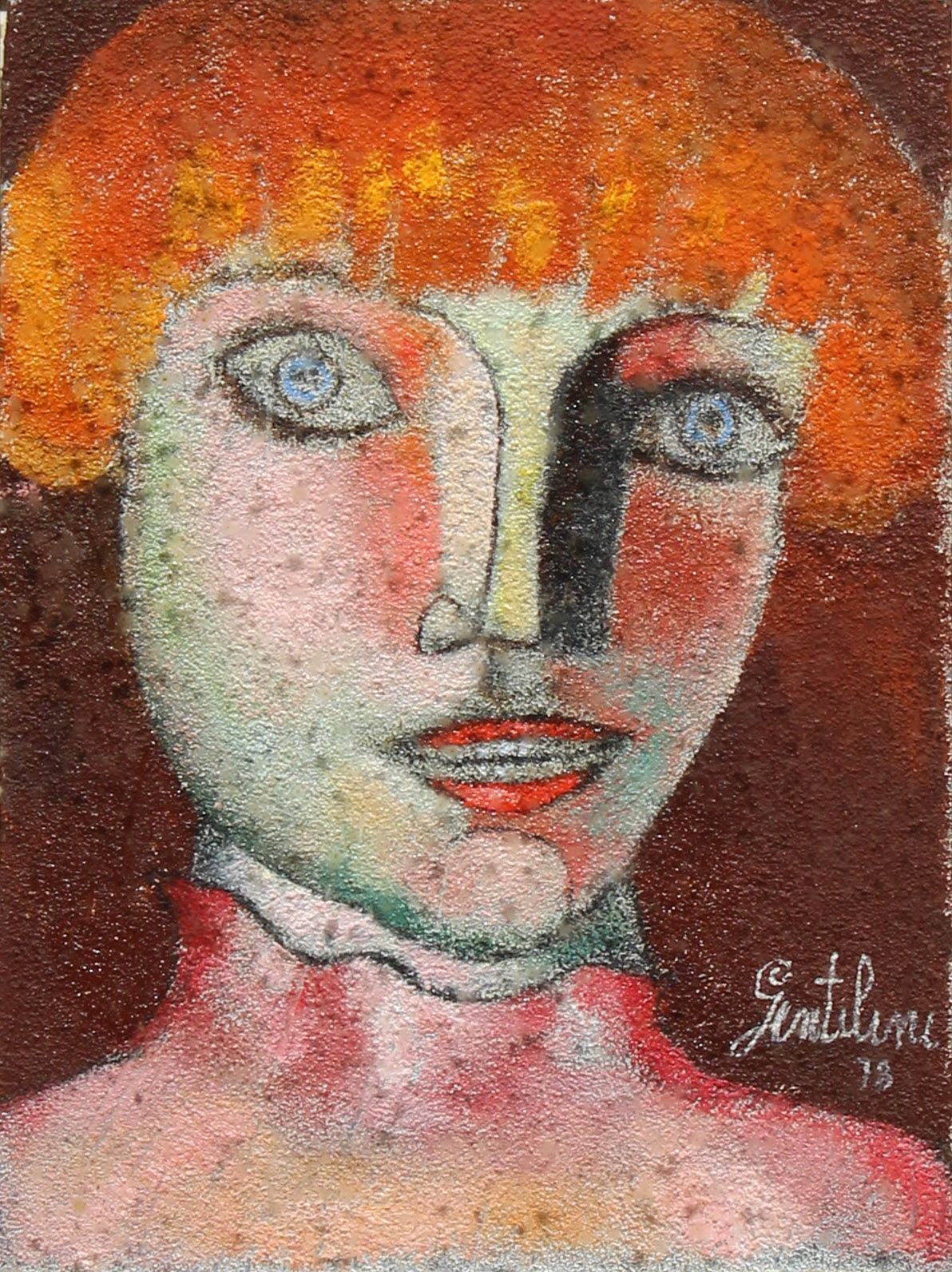GENTILINI Franco, La francesina 1978 olio su cartone sabbiato intelato cm. 25 x 18G.Apella "Gentilini - Catalogo generale dei dipinti 1923-1981" Ed. De Luca, Roma, 2000, p.691, rif.1615Firma, data "Gentilini 78" (in basso a destra). Autentica di Luciana Gentilini in data Roma, 20/10/1981