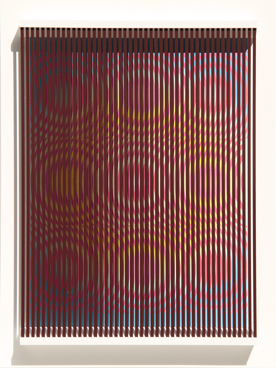 BIASI Alberto, Lacrime di coccodrillo 2011 rilievo in PVC su tavola dipinta cm. 51 x 37Firma, titolo, data, numero di archivio "Alberto Biasi, Lacrime di coccodrillo, 2011, archivio n°OC/955" (al retro). Autentica dell'artista su fotografia con n° OC955 in data 04/09/2014