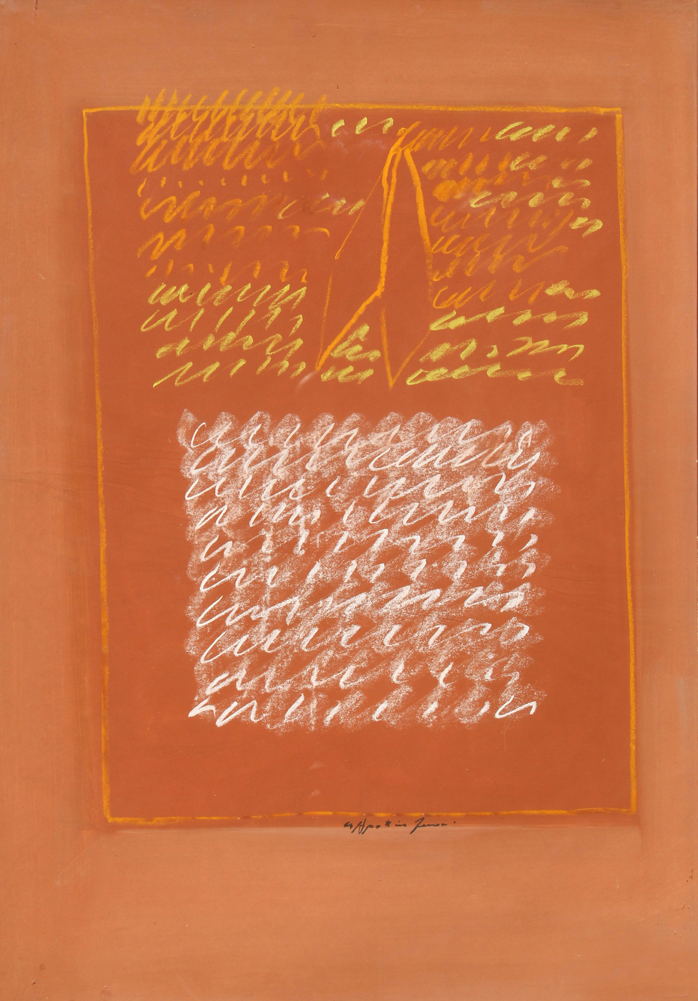 FERRARI Agostino, Senza titolo 1963 tecnica mista su carta applicata su faesite cm. 70 x 50Firma "Agostino Ferrari" (in basso al centro)