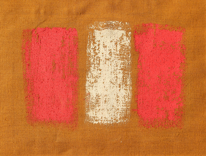 EMBLEMA Salvatore, Senza titolo 2000 terre colorate su tela di juta cm. 60 x 80Firma, data "Emblema, 2000" (al retro). Autentica a cura del Museo Emblema - Archivio Fotografico delle Opere, con n. 432, con firma di Raffaella Auricchio Emblema