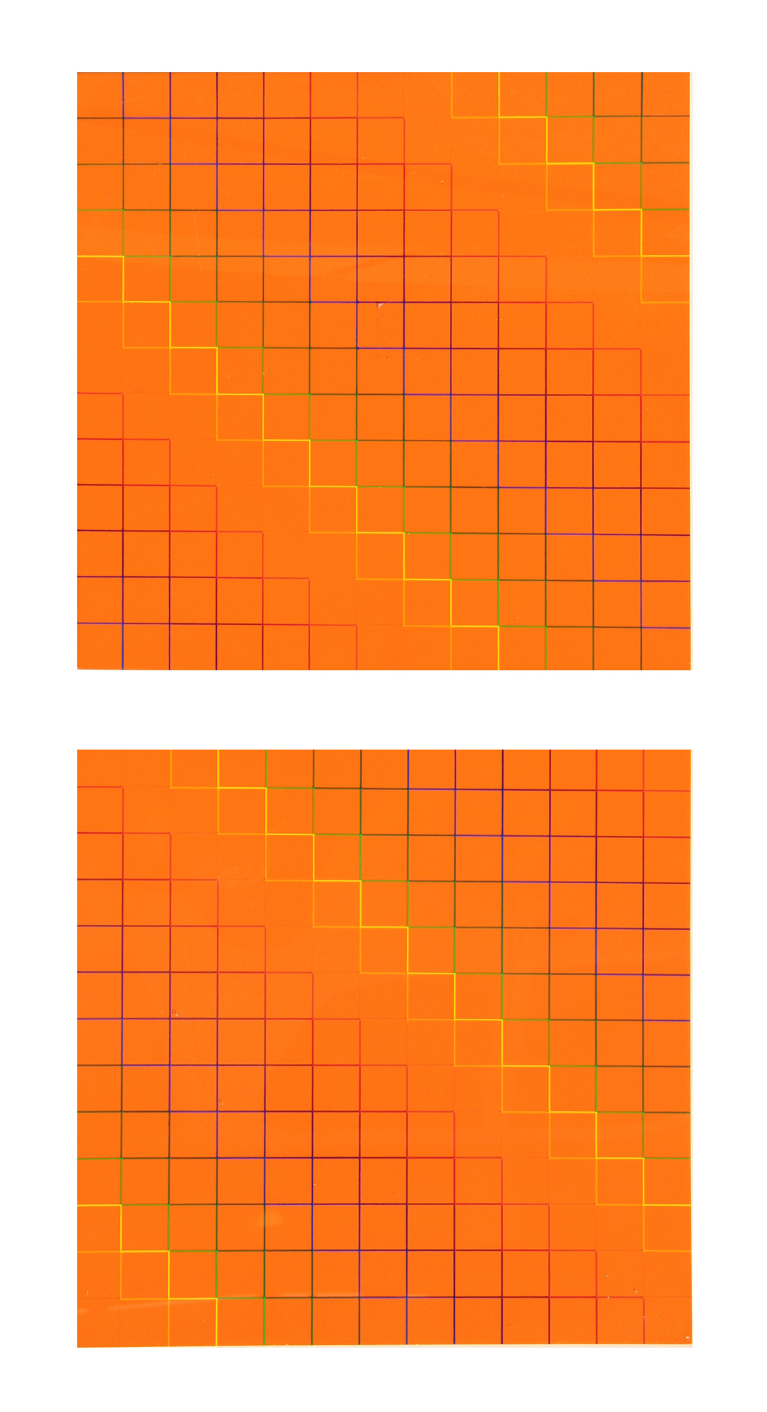 "Interazioni cromatiche Paolo Minoli", Galleria Lorenzelli, giugno 1978La misura è riferita a ciascuna opera, la misura della tavola è cm. 105x60
