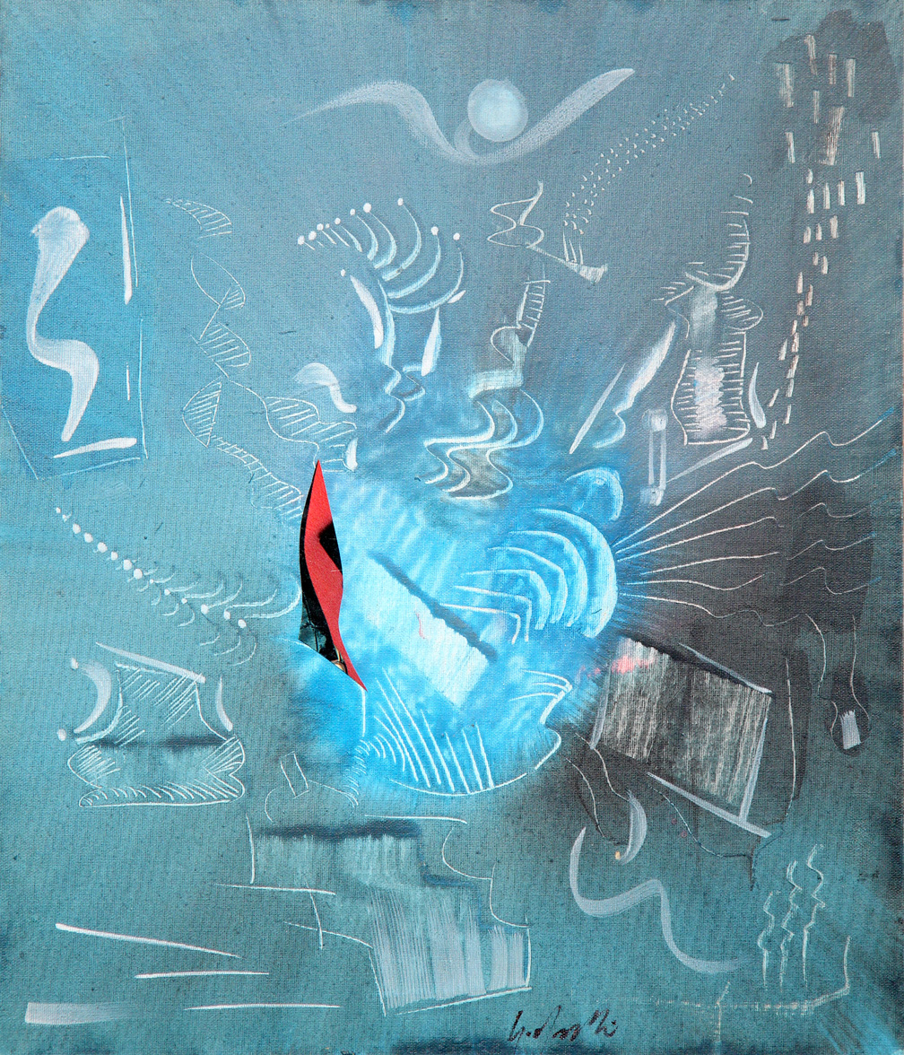 DANGELO Sergio, Agitazione terrestre olio su cartone telato cm. 40 x 35Firma "Sergio Dangelo" (in basso al centro). Autentica dell'artista su fotografia