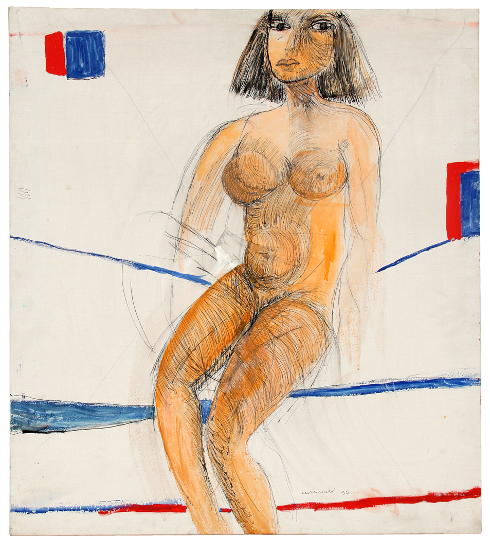 CASSINARI Bruno, Figura 1990 tempera su tela cm. 90 x 80Firma, data "Cassinari 90" (in basso a destra). Autentica dell'artista su fotografia