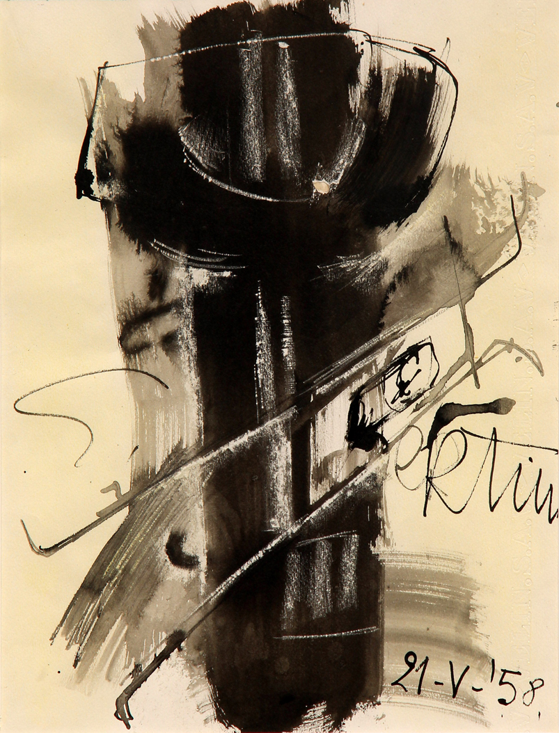 BERTINI Gianni, Senza titolo 1958 tecnica mista su carta cm. 32.5 x 25Firma, data "Bertini, 21-V-58" (in basso a destra). Autentica dell'Associazione Gianni Bertini in data Milano, 29.01.2018