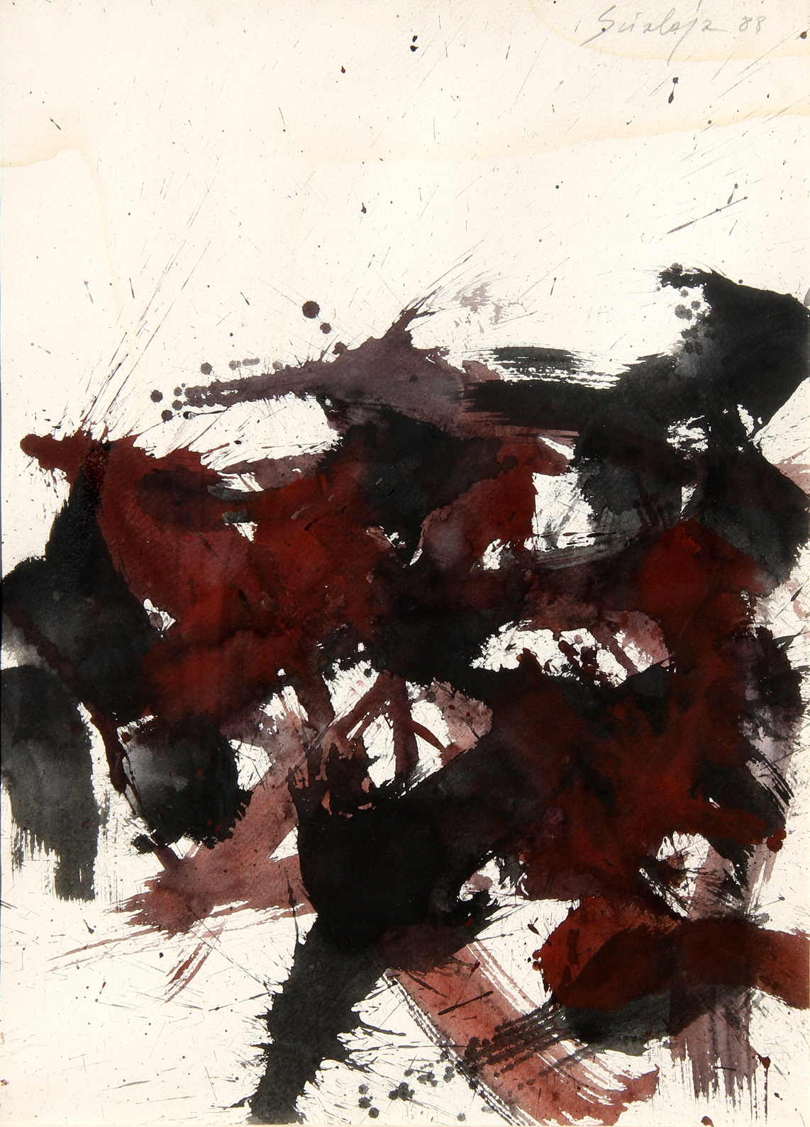 SCIALOJA Toti, Senza titolo 1988 acquarello su carta applicata su tela cm. 48.5 x 36Firma, data "Scialoja, 88" (in alto a destra). Autentica dell'artista su fotografia