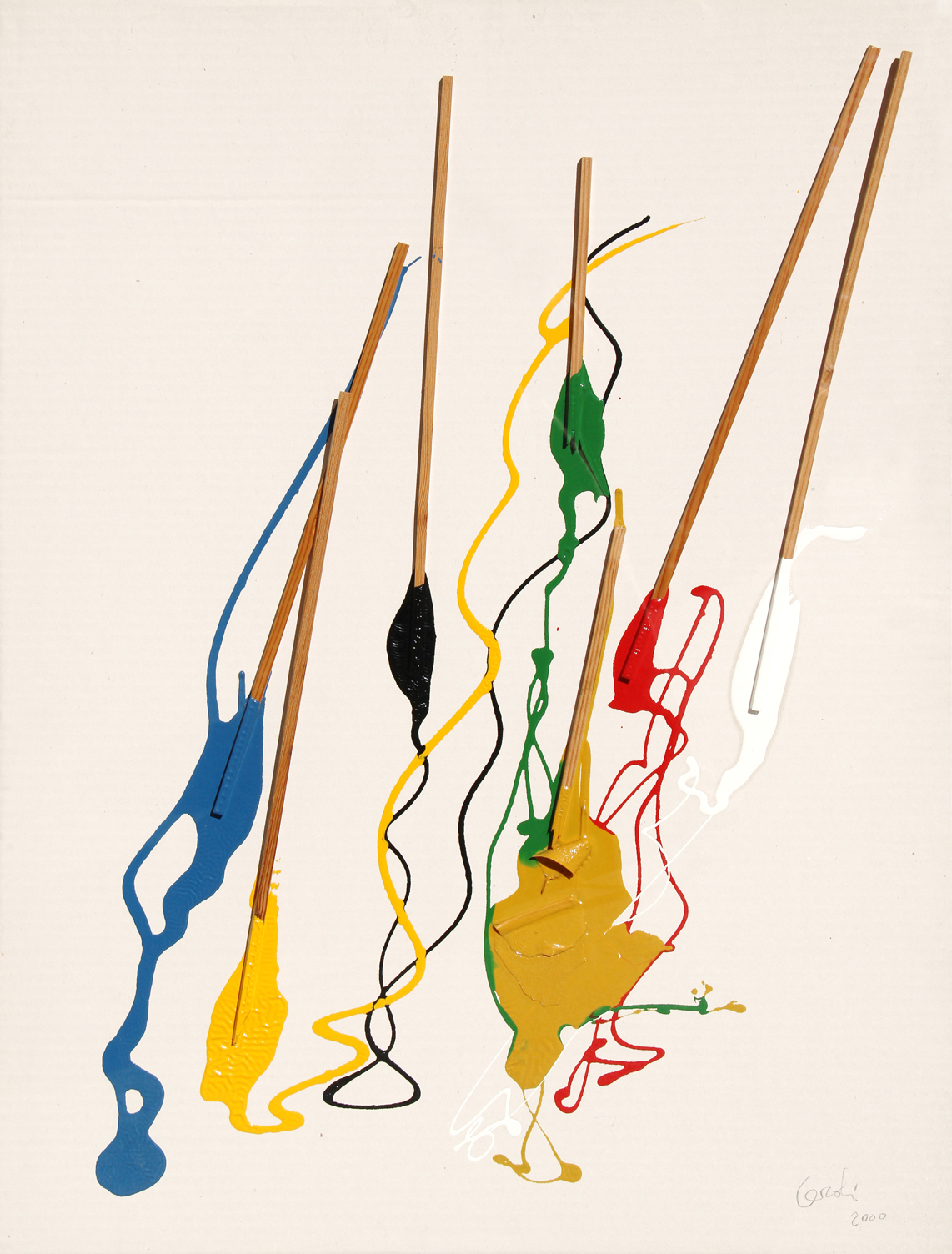 CEROLI Mario, Ti scrivo 2000 terre e legno su cartone cm. 77 x 57Firma, data "Ceroli, 2000" (in basso a destra).