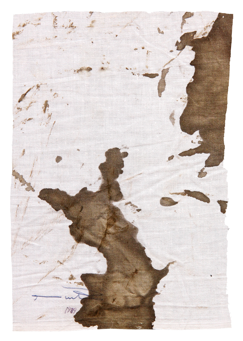 NITSCH Hermann, Blood on linen 1989 sangue su tela cm. 25 x 18Firma, data "H. Nitsch, 1989" (in basso a sinistra)