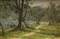FIESSI ANGELO (1891 - 1977) Ulivi con personaggio,donna sotto l'albero. Olio su tela. Cm 22,5x43,5. Firma in basso a destra. Cornice presente.