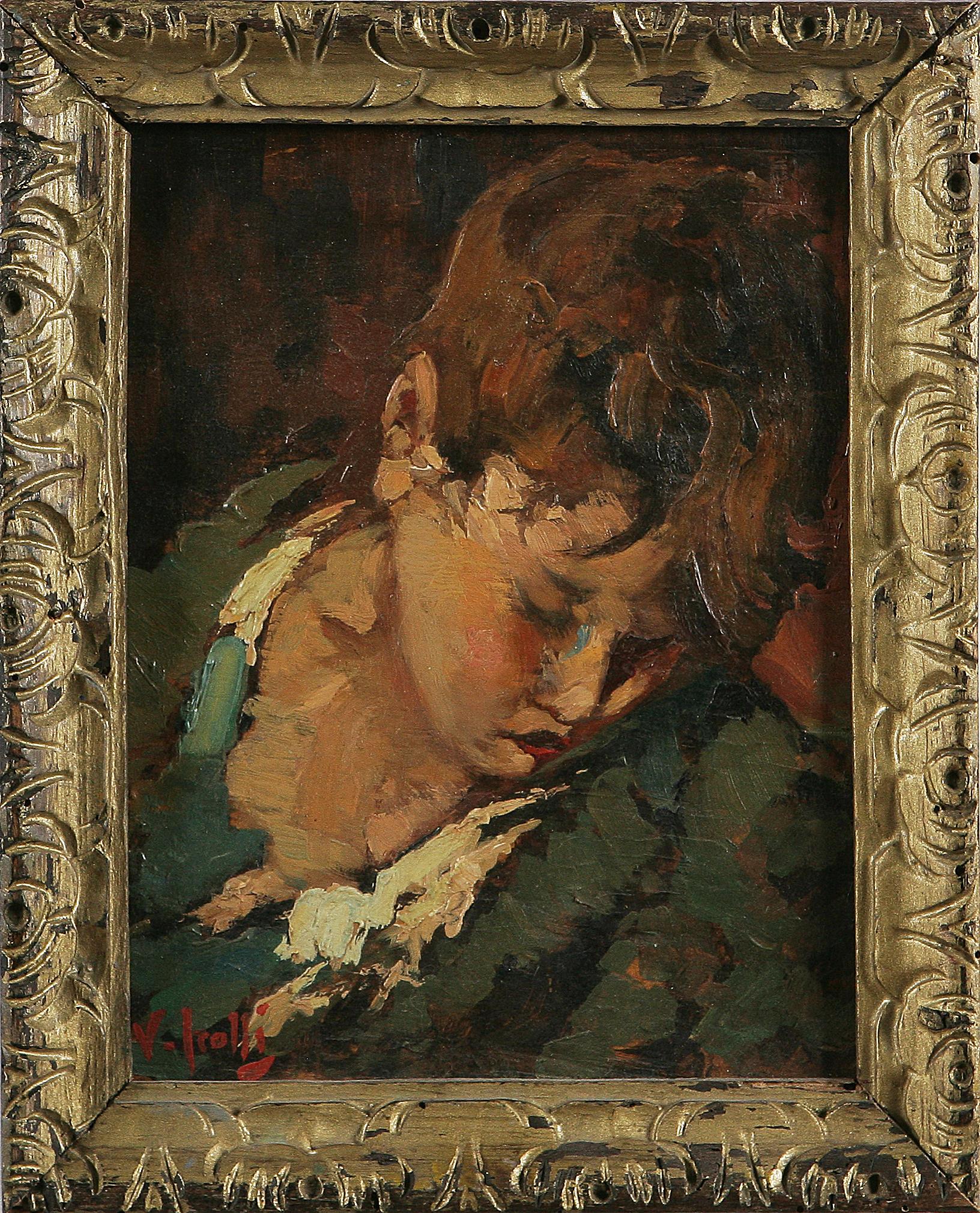 IROLLI VINCENZO (1860 - 1942) Volto di fanciullo. Olio su tavoletta. Cm 22,5x17. Firma in basso a sinistra. Cornice presente.