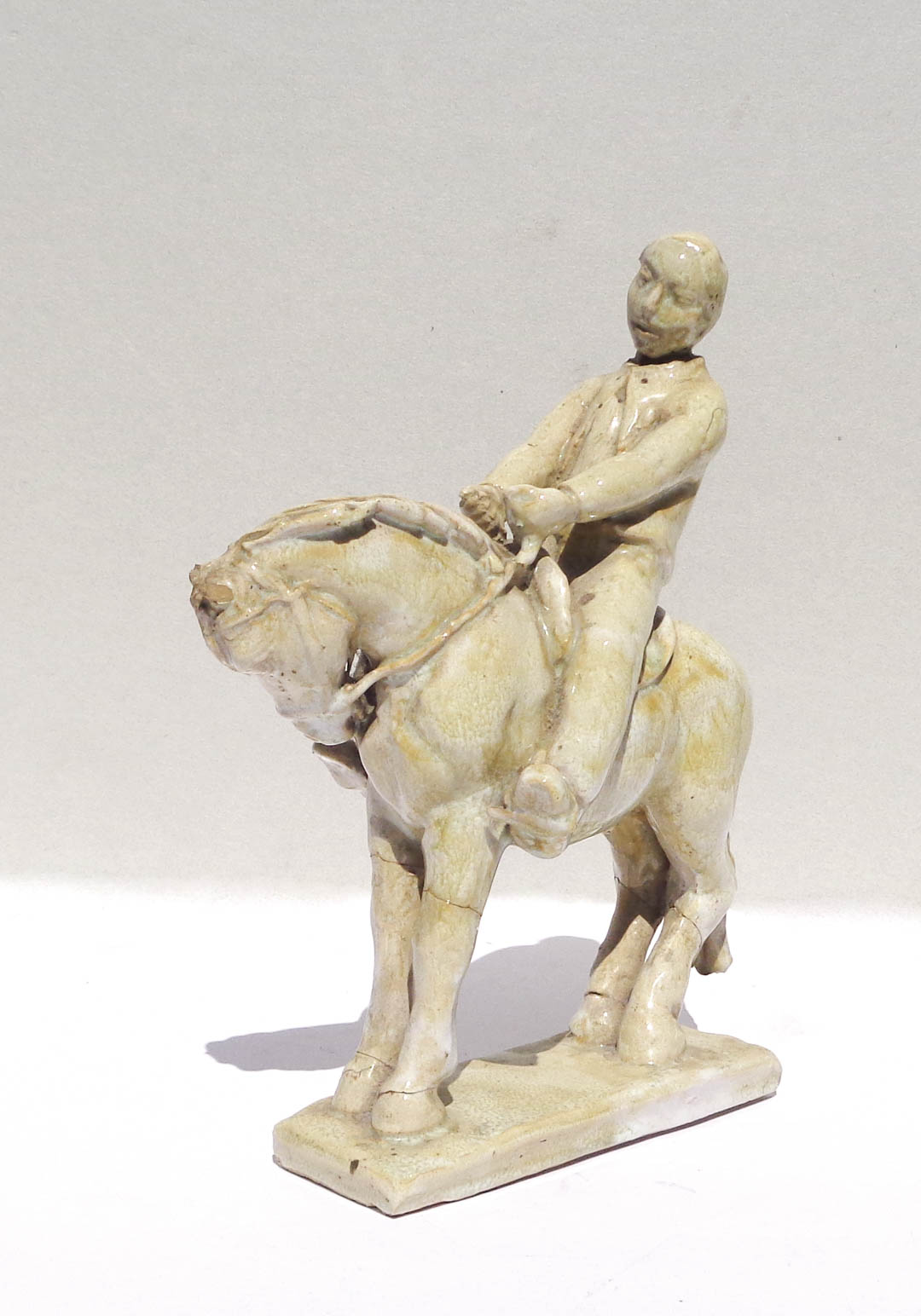 Maria Delago (St. Leonhard/S. Leonardo 1902 – Brixen/Bressanone 1979) Cavaliere, 1931;Ceramica smaltata, h. 20 cm, restauri, piccole mancanze