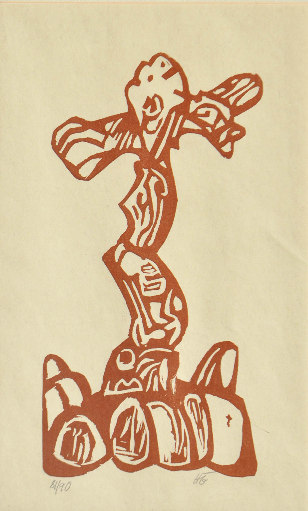 Hilde Goldschmidt (Leipzig/Lipsia 1897 – Kitzbühel 1980) Cactus, Gozo;Incisione in linoleum, 36 x 22 cm, in cornice