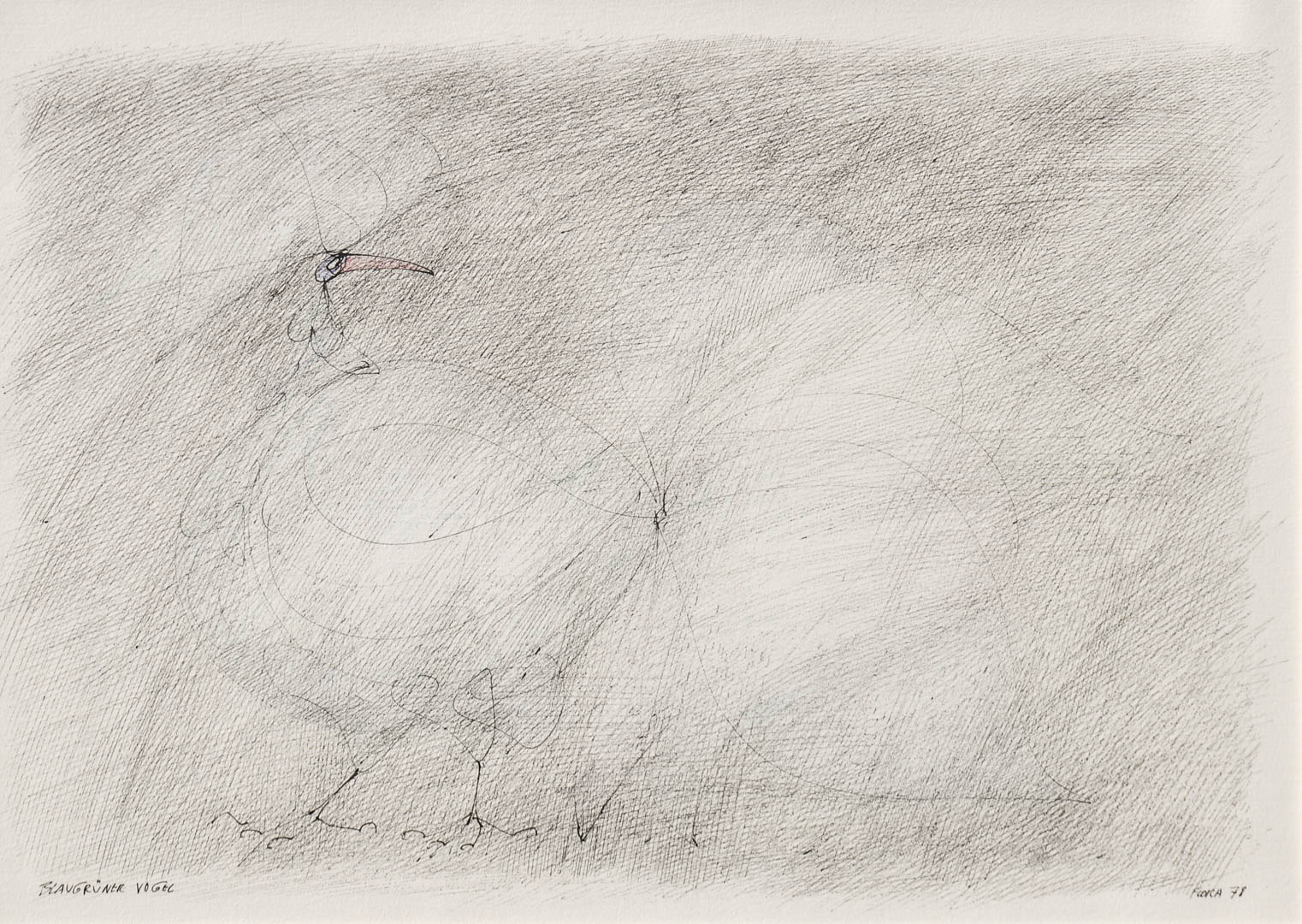 Paul Flora (Glurns/Glorenza 1922 – Innsbruck 2003) Uccello blu-verde, 1978;China, matite colorate, 27,2 x 38 cm