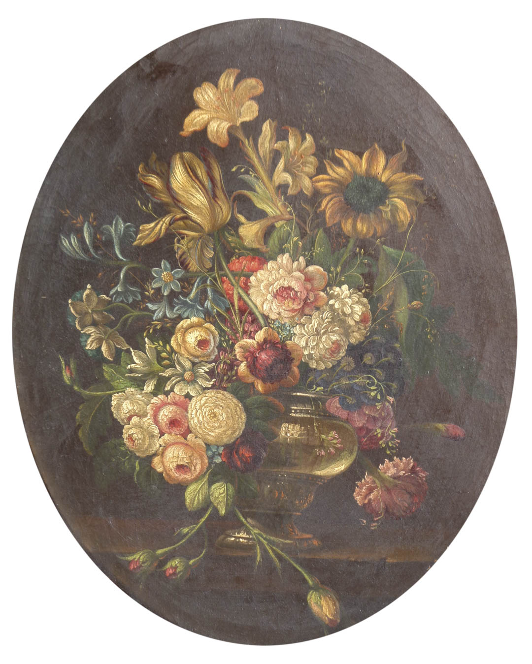 Maler des 18. Jh./Pittore dell’700 Fiori;2 quadri a olio su tela, 76 x 58 cm ciascuno, da pulire, in cornice