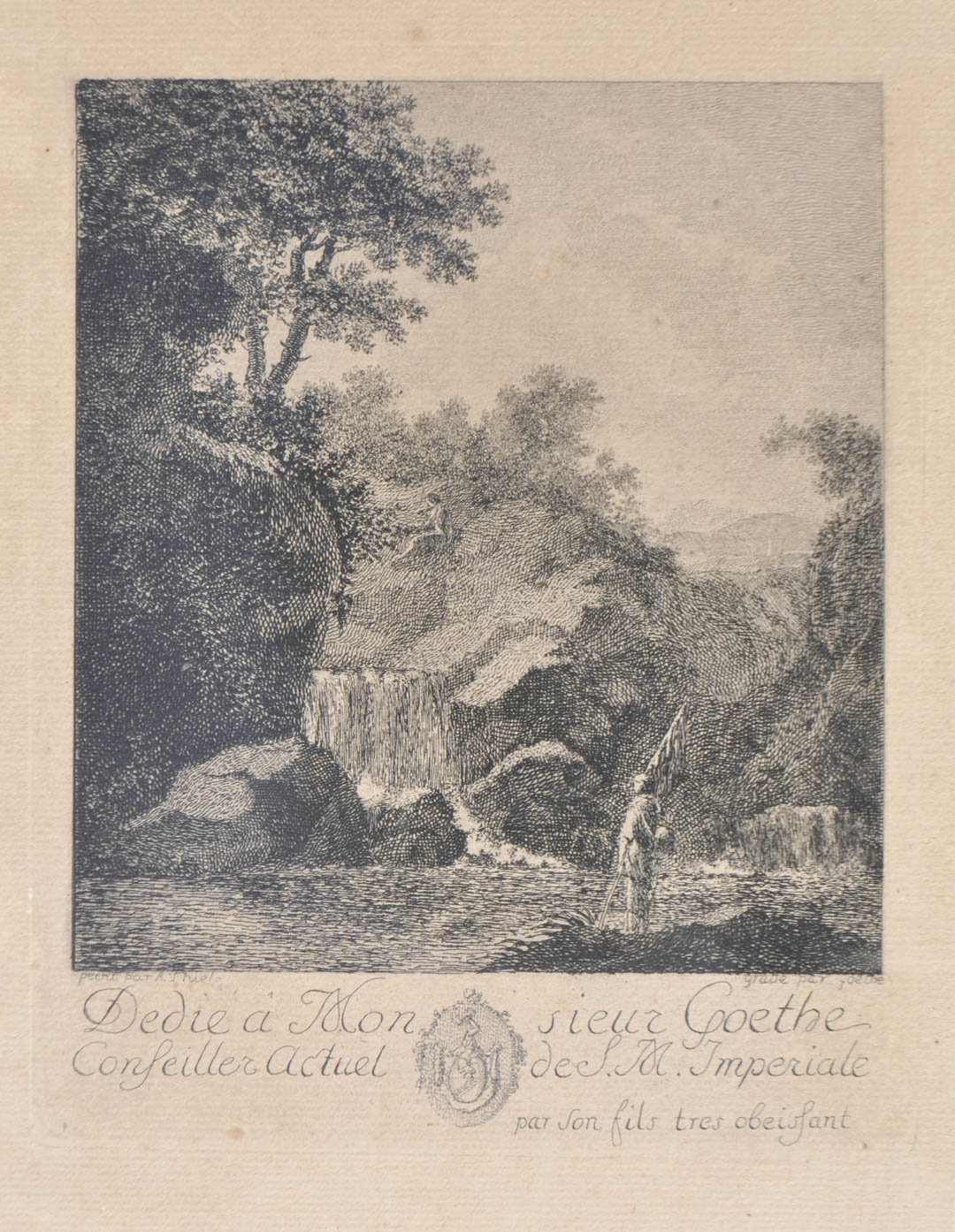 Johann Wolfgang von Goethe nach Alexander Thiele Paesaggio alpino con cascata, 1767;Acquaforte, 17,1 x 13,8 cm (lastra), carta brunita