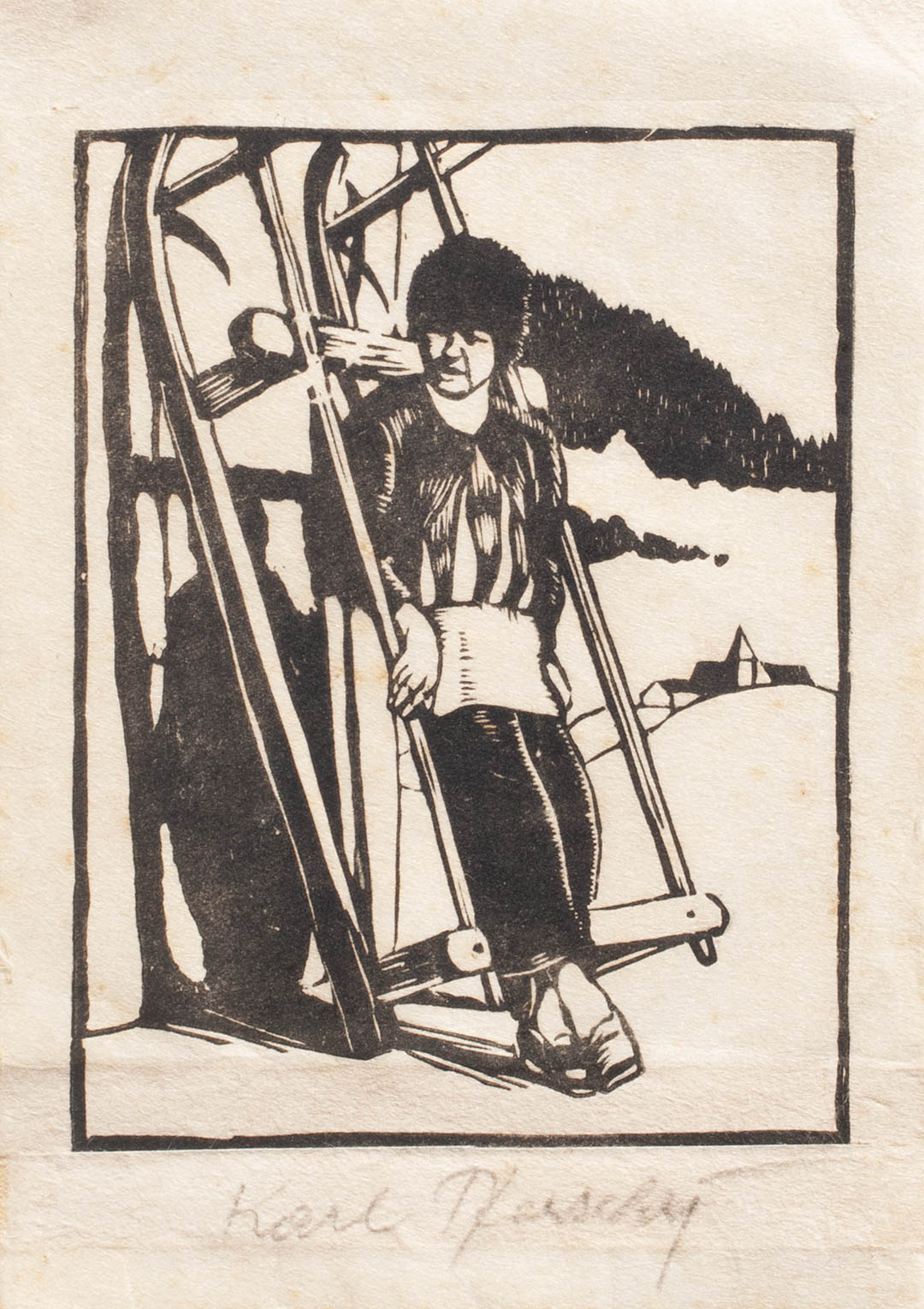 Karl Pferschy (Deutschlandsberg 1888 – Bozen/Bolzano 1930) Contadino con slitta;Xilografia, 16,2 x 11,8 cm