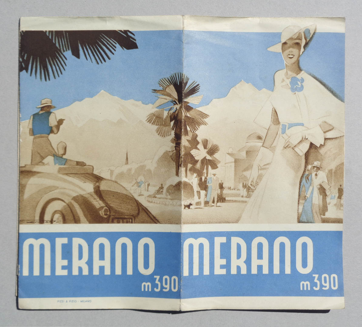 Franz Lenhart (Bad Häring 1898 – Meran Merano 1992) 3 depliant “Merano”, Anni ‘30;Litografia a col., pieghevoli, aperti 23,5; 25,5; 23 cm