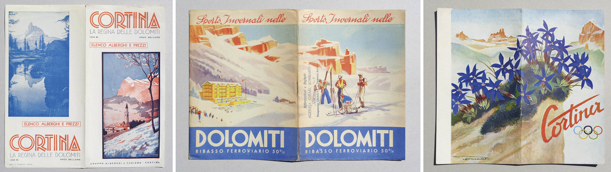 Franz Lenhart (Bad Häring 1898 – Meran Merano 1992) 3 depliant “Cortina/Dolomiti”, Anni ‘30;