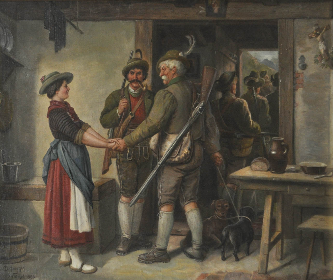 Oswald Völkel nach/su modello di Franz von Defregger Partenza dei cacciatori, 1936;