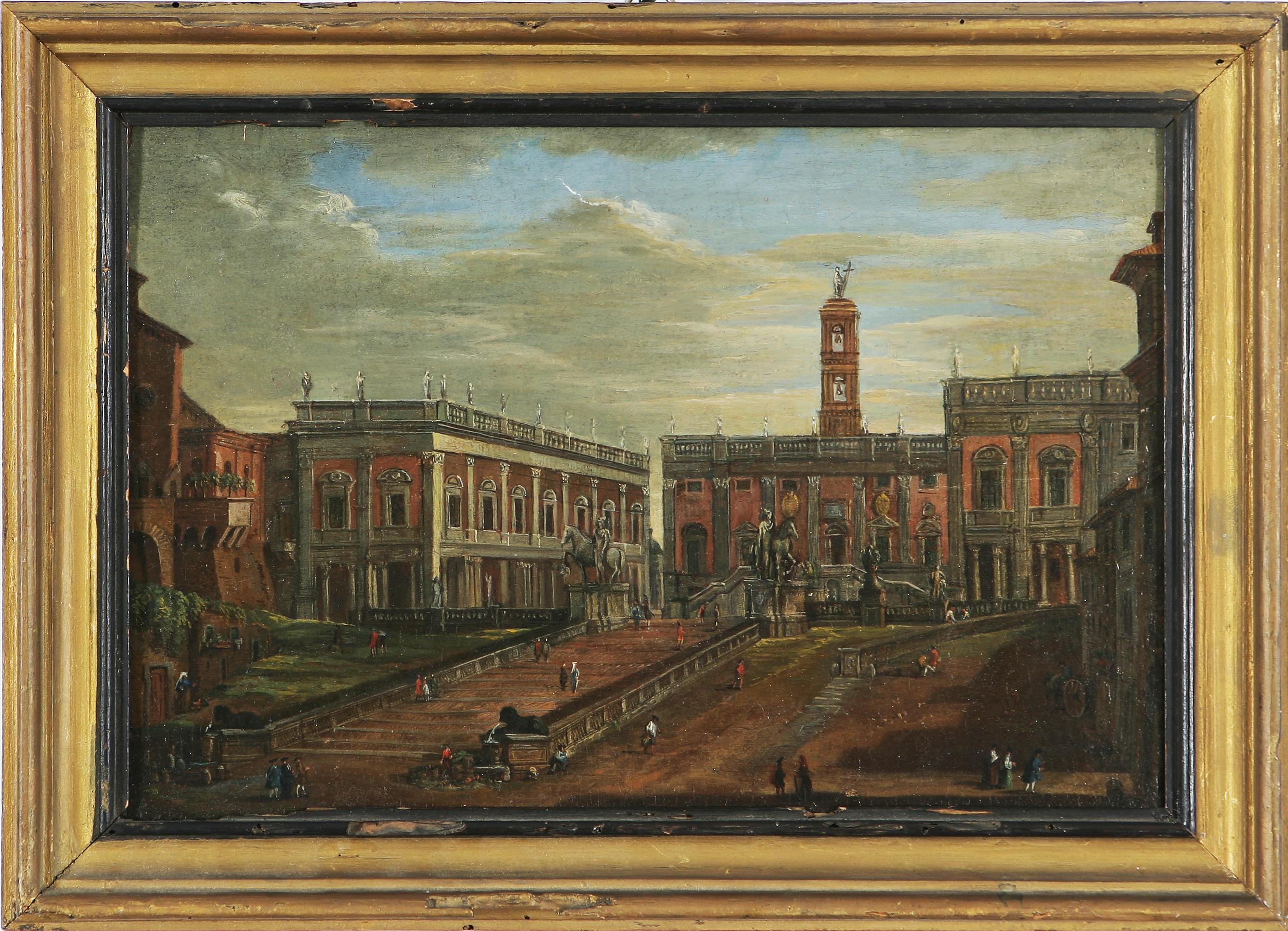 PITTORE DEL XVIII SECOLO Veduta del Campidoglio. Olio su tela. Cm 22x32.