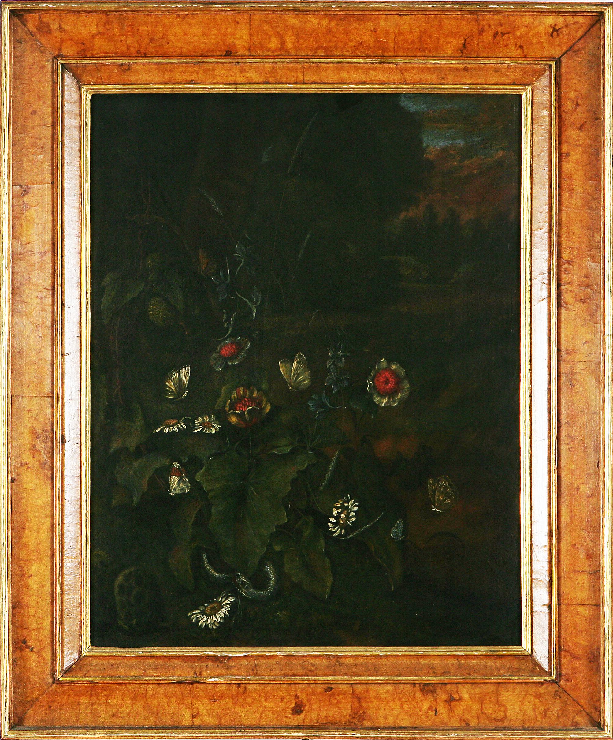 COPIATORE FIAMMINGO DEL XIX SECOLO NELLO STILE DEL XVII SECOLO Fiori in un paesaggio, Olio su tavola. Cm 47x62. Opera provvista di certificato di esportazione - Export licence provided.