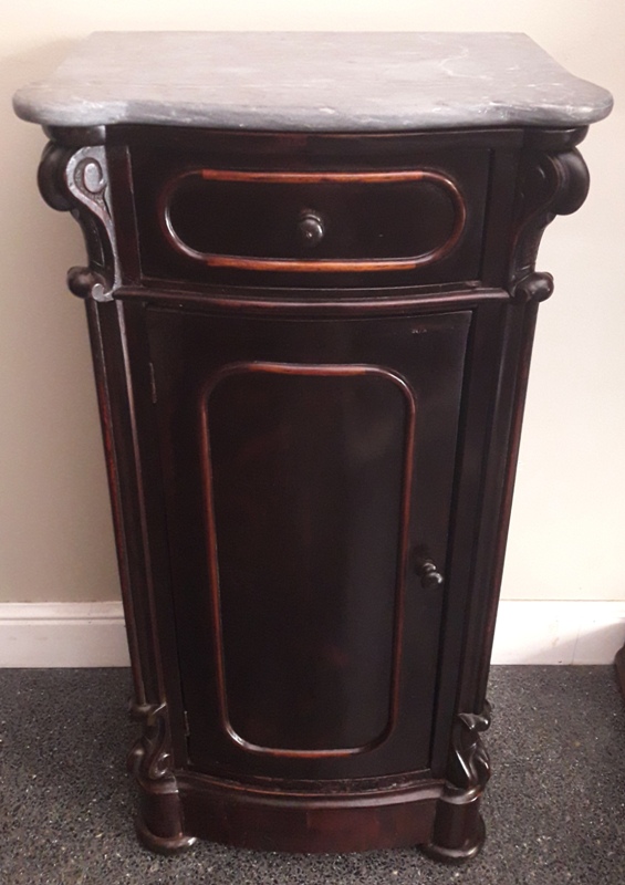made of mahogany, Louis Filippo style. Equipped with a marble top, they have 1 eta plus 1 drawer. Cm size 31x46x92 H.