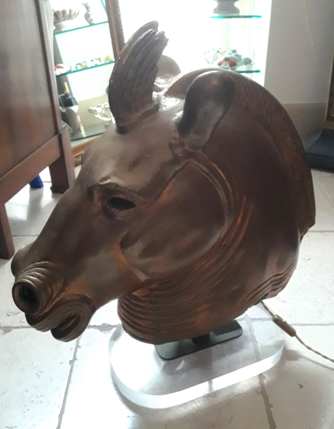 bronze horse head of old-fashioned Medicean style. Centimeter size 83x28x71 H.