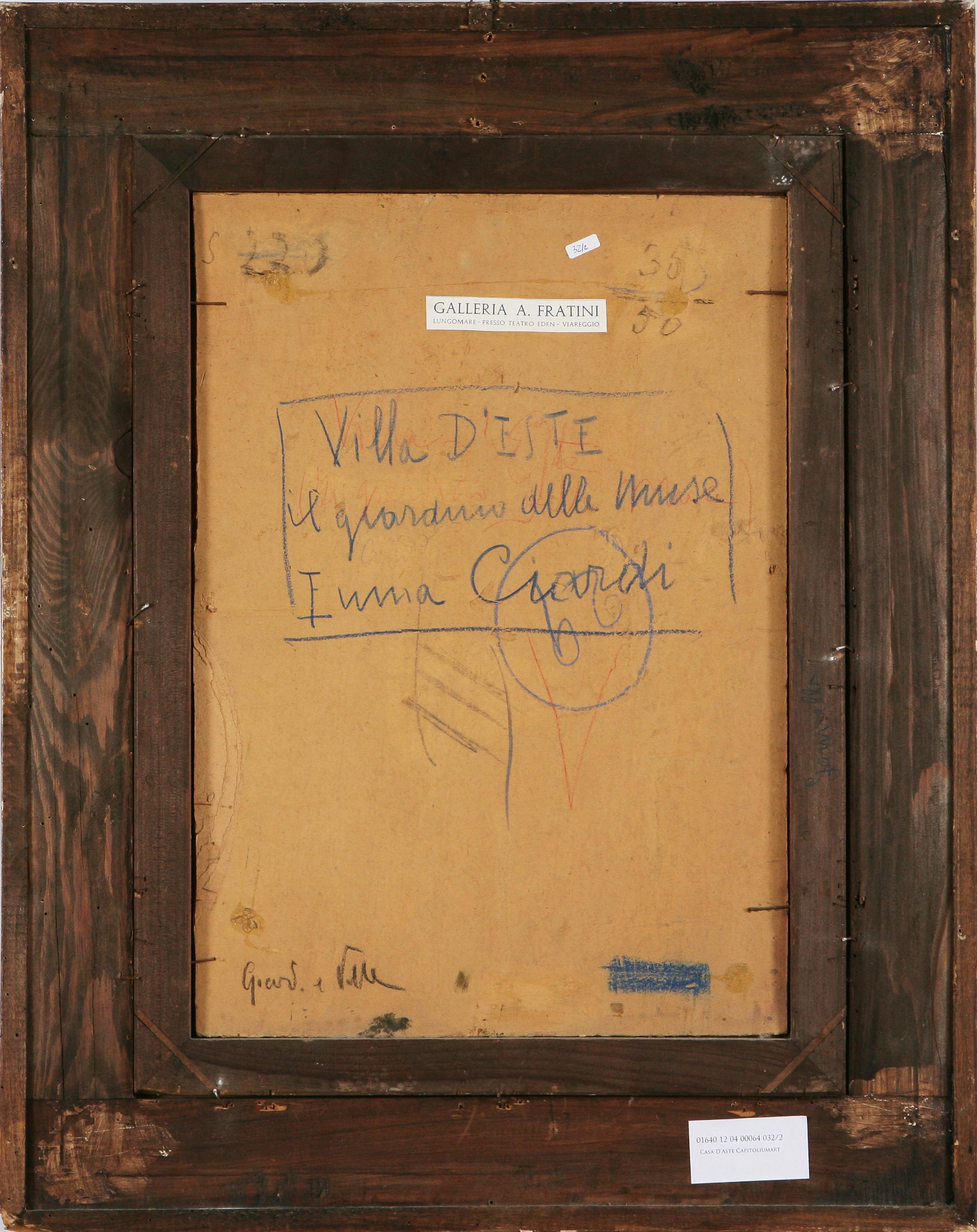 CIARDI EMMA (1879 - 1933) Giardino e fontana con personaggi in costumi...